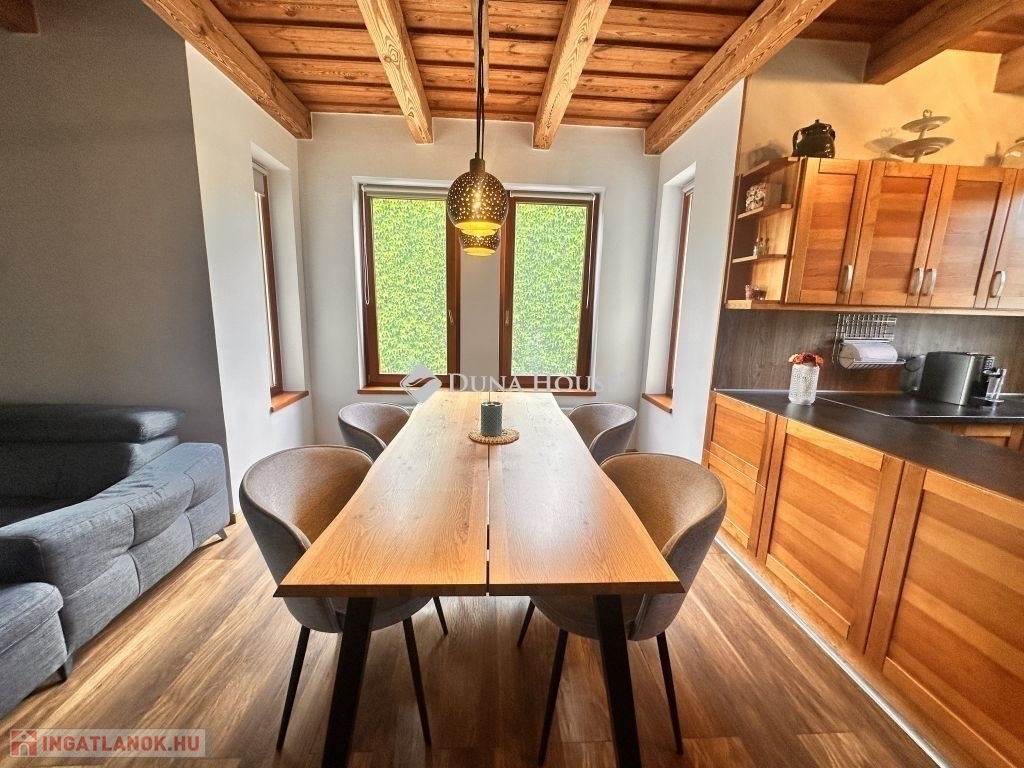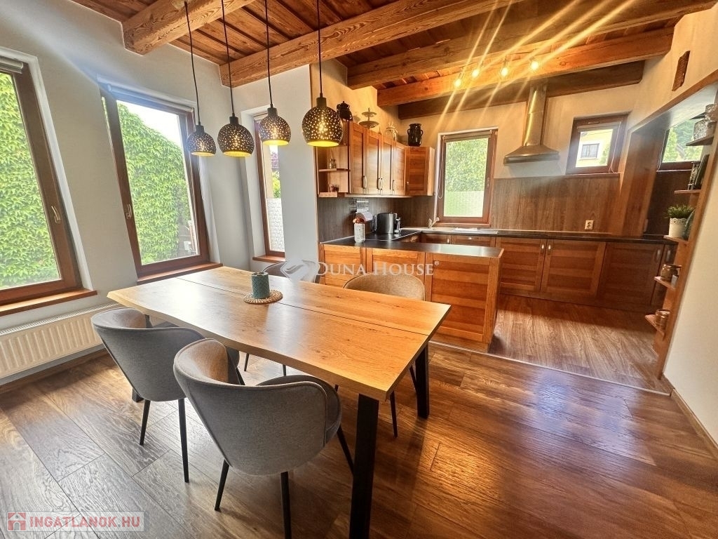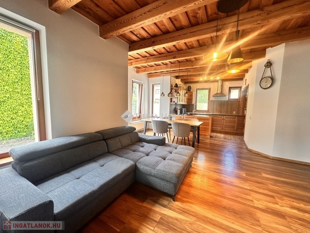 Jó szívvel ajánlom megvételre Vas megyében az Őrség Kapujában ezt a 2009-ben épült, 160 m2-es családi házat és meghitt otthont, ahová a családtagok szívesen térnek haza.Csákánydoroszló az osztrák határ közelében található ahol az Őrség semmihez sem fogható tája és bája számos szabadidős kikapcsolódást és tevékenységnek kínál minden korosztály számára. A romantikus ingatlan tökéletes választás azok számára, akik a vidéki nyugalomat és a természet közelségét szeretnék élvezni anélkül, hogy lemondanának a modern otthon kényelméről / fenntarthatóságáról illetve az energiatakarákosságot is fontosnak tartják.Az autentikus hangulatú családi háznak tégla falazata van melyen 10 cm-es hőszigetelés található. A nyílászárók fából készültek, az egész ház szigetelt fafödémes. A tető terrán cseréppel fedett. A házban 3 hálószoba, nappali, étkező, konyha, nagy fürdő WC-vel, előtér, közlekedő, ruhás és cipős gardrób, kazánház, lakásból nyíló fűtött garázs benne elkülönített mosó helyiség WC-vel, valamint egy nappalivá beépített korábbi terasz található. A konyha és a fürdőszoba 4 éve teljeskörűen átépítésre került. A melegvíz ellátását napkollektor+gázkazán biztosítja. A házat fűteni a nappaliban található vízteres kandallóval vagy gázkazánnal radiátoron és padlófűtésen keresztül lehet, illetve a ház hűtése-fűtése beépített klímával is megoldható. 4,6 kW-os napelem rendszer 2021-ben került telepítésre, amely bőségesen kielégíti a ház szükségleteit, ennek köszönhetően nincs áramszámla. A ház biztonságáról riasztó és 4 kamerás megfigyelő rendszer gondoskodik. Az ablakokon szúnyoghálók találhatók. Az udvar területén 36 m2-es garázs található, melyben 12 m2-es nyári konyha került kialakításra. A kényelmet fokozza az elektromos bejárati és garázskapuk. Az udvar első része parkosított melyen nyári kiülő is helyet kapott. A udvar hátulsó kb. 800 m2-es részén 3db autóbeálló/tároló, valamint gazdasági épületek (3 db angol box, tároló, szénatároló és fatároló) található.A sík és ideális terepviszonyokkal rendelkező telek teljes tererülete be van kerítve.A településen van iskola, óvoda, bölcsőde, boltok, házi és fogorvosi rendelők, védőnői szolgálat, gyógyszertár, benzinkút, vasútállomás, étterem...Ha a hirdetésem felkeltette az érdeklődését akkor kérem hívjon bizalommal és tudjon meg többet erről a csodálatos ingatlanról.Irodánkban pénzügyi szakértő kollégánk segíti ügyfeleink Hitel és CSOK ügyintézését ezzel együtt támogatja vásárlási szándékukat. Ne feledje vevőinknek minden szolgáltatásunk INGYENES!