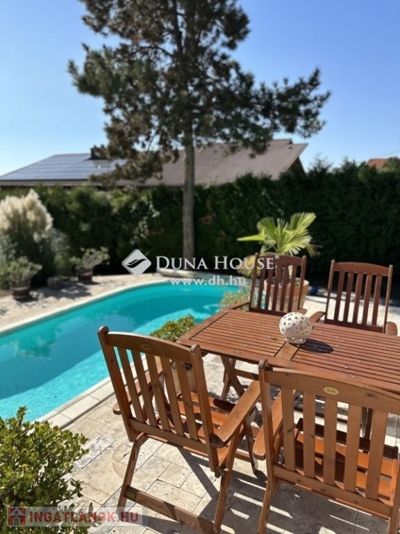 Medence leírása:1 EMMA2 415 komplett Waterair úszómedence Méretei lépcsővel: 8,17 mx4,15 m, 25 m2 Fl profilban elmélyítve 1,20 m-rl 1,70 m-rl Tartozékok: 150/100 mm, többszörös felületkezelésű horganyzott acél önhordó medencepalást 20 év garanciával, 0,8 mm vastag UV-stabilizált, gvárilag hegesztett türkiz színű fóliaköpeny 12 év garanciával. PACIO 2,96 m széles, kényelmes, szürke gránit színű 4 fokú lépcső és ülőpad. 1 db fejtámla. Felszínleszívó,befúvószelep csövezéssel és fittingekkel. Kézi porszívó, vízmintavevő, lomblehalászó háló, hőmérő, kefe és 6 havi komplett vegyszerkészlet. 2 Peremkövek méretre készítve fugaporral3 Escalight hangulatvilágítás: 6 db 12V LED spot a lépcsőbe építve 43 db állítható hidromasszázs szelep légkeveréssel, a lépcsőbe építve 5 Isoplan oldalfal hőszigetelés.61 db vízalatti LED fényszóró transzformátorral, szerelési anyagokkal 25 W/12V 7 LOCATEC PREMIUM(1,15x1,15x1,20 m)Ellenálló polietilénből készült, előszerelt gépház zuhanytálcaként kialakított fedéllel. Benne homokszűrő,15 m3/h kapacitású szivattyú, elektromos kapcsolószekrény 30 mA Fi-relével. Fedél gázdugattyús nyitáskönnyítővel, a zuhanytálca WPC (Wood Polyester Composite) anyagú, könnyen 8 kezelhető lábráccsal. Fűtés előkészítés (aknába épített fitting előszerelve, cső nélkül) 9 Ibiza szolárzuhany 401 11 Watertop biztonsági takaró (kék)Meleg szívvel ajánlom ezt a jelenlegi tulajdonosok által oly nagyon szeretettel gondozott, ápolt és féltve őrzött ingatlant!