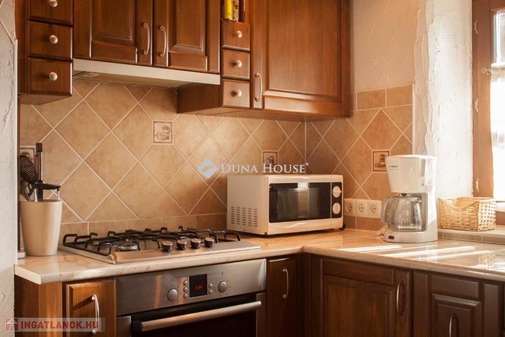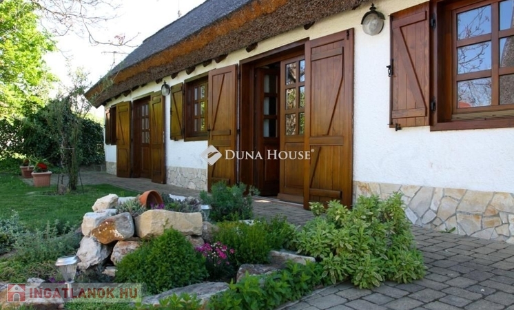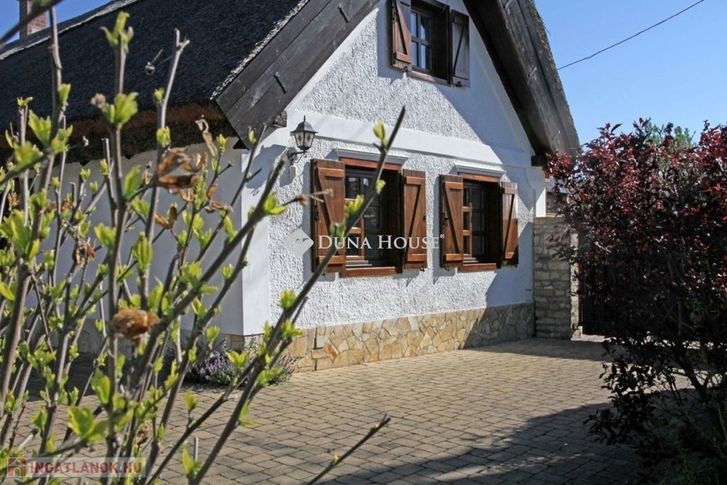A központtól és Balatontól is 10 perc gyalogtávolságnyira lévő ingatlan folyamatos felújításon esik át. Tulajdonosa az évek során már kicserélte már mindkét ház nádtetejét (2017), a csöveket, renoválta a falat, szépítgette a kertet, de sajnos most eladására kényszerül. A 752 nm-es telken található házak hasznos alapterülete összesen 126 nm (88 nm a nagyobb, 38 nm a kisebb ház). A házat meleg, otthonos atmosztéra jellemzi. Kényelmes belső terek, világos szobák és gondosan ápolt részletek teszik igazán szerethetővé.