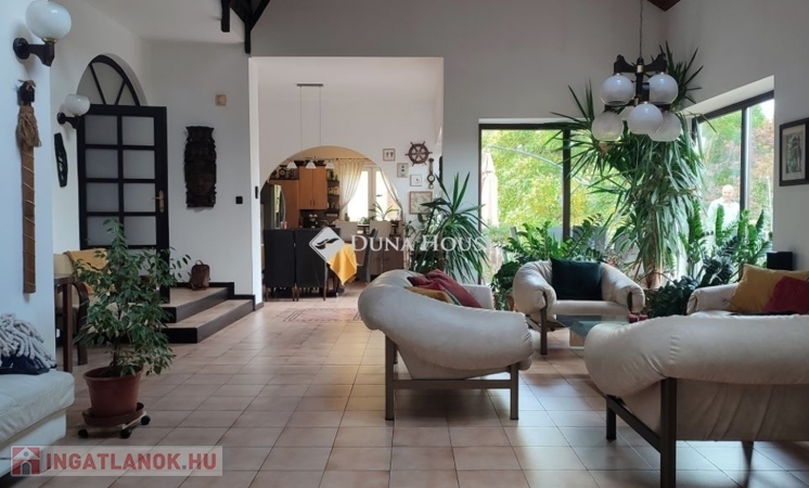 A ház egy 1324 m²-es, gondozott, ősfás telken fekszik, ahol a buja növényzet és egy impozáns mamutfenyő biztosítja a páratlan hangulatot.