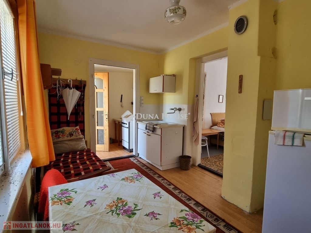 A kisebb, 1 szobás ház felújítása után akár vendégházként vagy hosszú távú bérlők számára is ideális lehet, hiszen itt is megtalálható a fürdőszoba, s az étkezős konyha.
