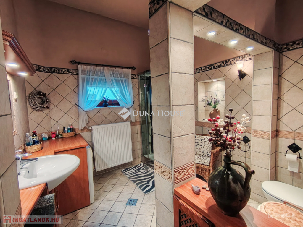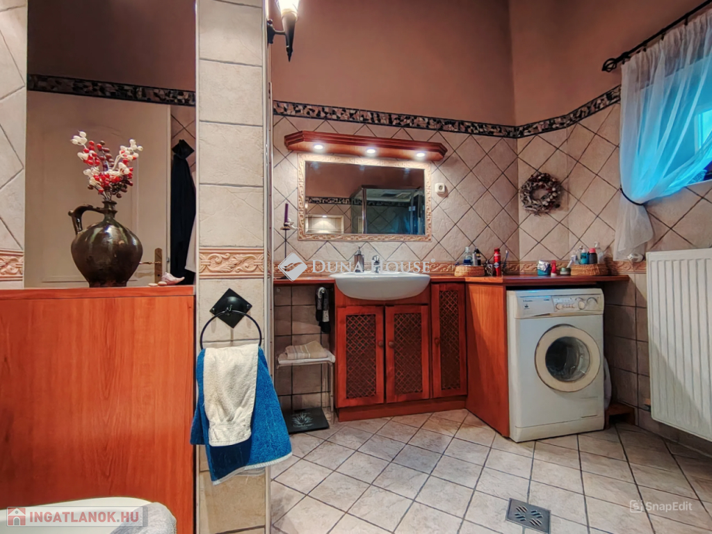 Belépve az otthonba, az első, ami szembetűnik, az a gondos tervezés, a meleg, otthonos érzés, amit a klasszikus kialakítás és a gyönyörű cserépkályha áraszt. A nappali kellemes közösségi teret biztosít, ahol a család tagjai összegyűlhetnek a cserépkályha melegében. A többi helyiség kialakítása is gondos tervezés előzött meg. Két kisebb és egy nagyobb hálószobát találunk az ingatlanban valamint egy tágas, ablakos fürdőszobát, melynek igazi Spa hangulata van, ami kiváló kikapcsolódást nyújt a hosszú napok után.