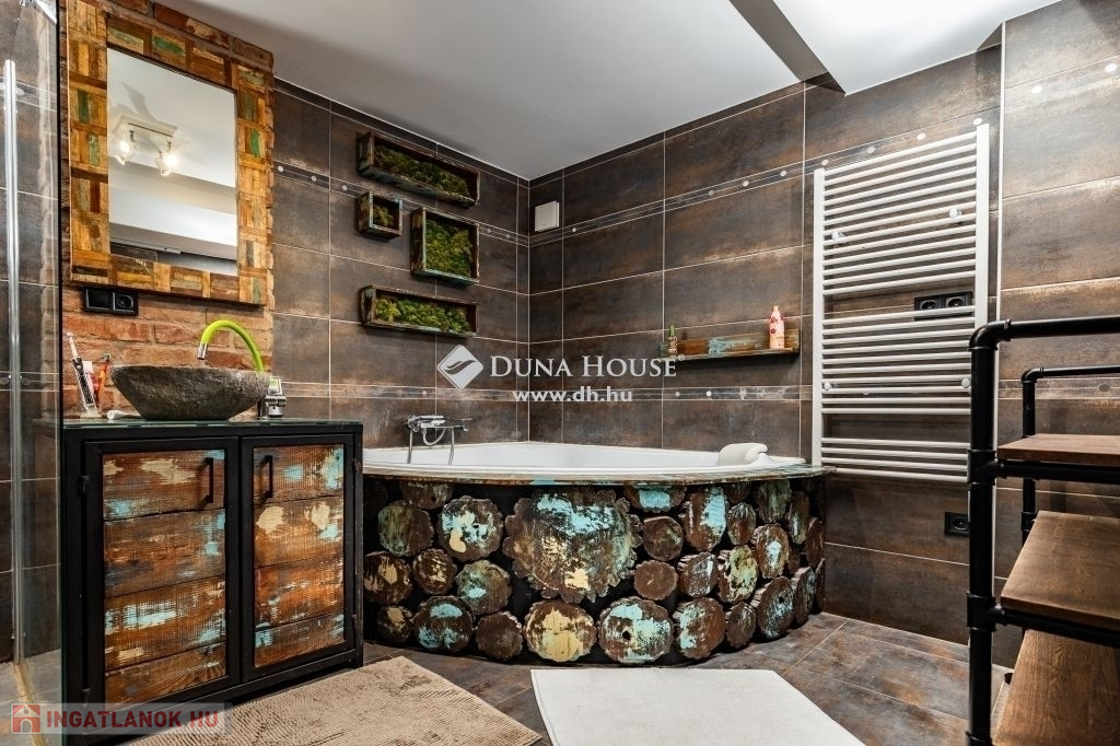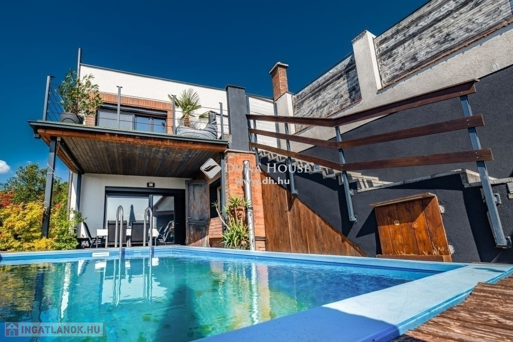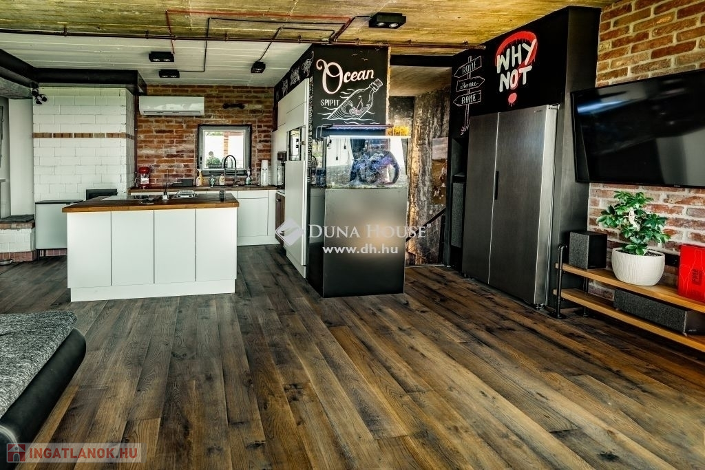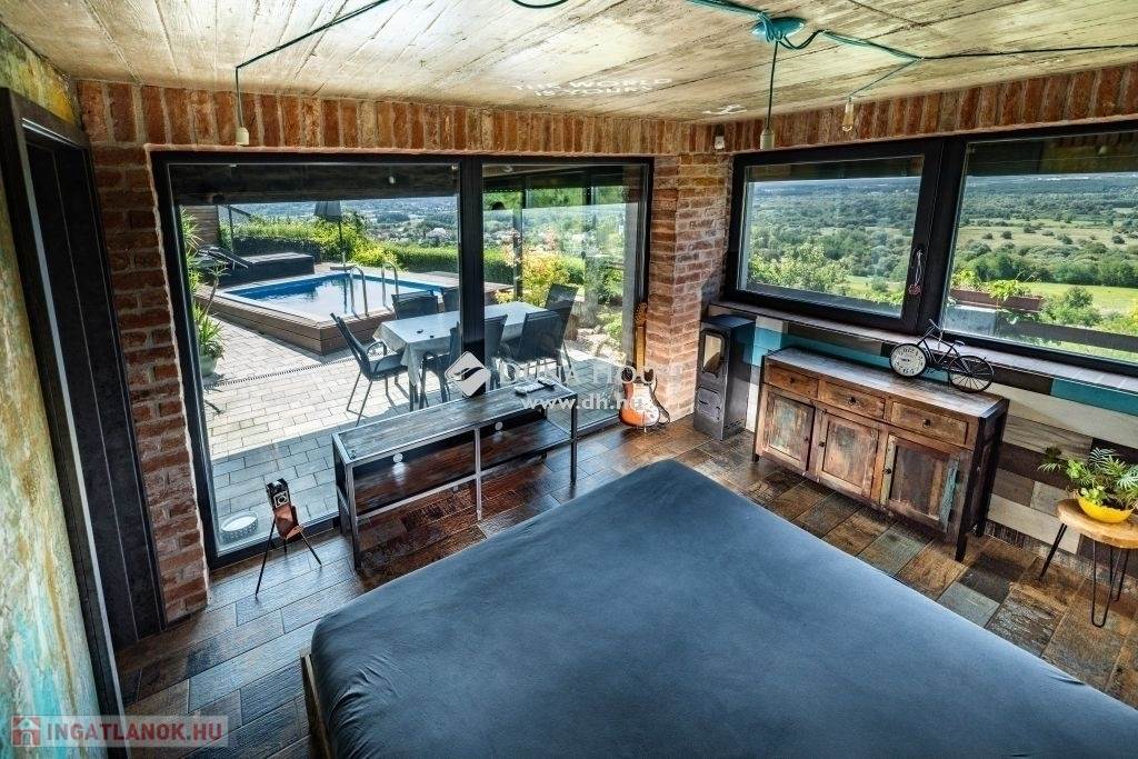 Zalaegerszeg egyik legszebb részén vált eladóvá ez a 2015-ben épült családi ház, amely két szinten, 148 m²-en biztosít tágas és kényelmes életteret. A loft jellegű, tégla építésű ingatlan nagy belmagasságával és nyitott tereivel azonnal magával ragadja az embert, miközben az ablakokból elképesztő panoráma nyílik a környező vidékre. A ház minden részlete a minőségről árulkodik: tömörfa padló burkolja a helyiségeket. Az ablakokat elektromos redőnyökkel látták el, melyek könnyedén kezelhetők, a modern kényelem jegyében. A ház klimatizált, és hővisszanyerős szellőző rendszerrel is felszerelt, amely az egész év során optimális hőmérsékletet és friss levegőt biztosít. A melegről a padlófűtés gondoskodik, emellett egy kandalló is megtalálható a nappaliban.Az ingatlan felső szintjén található egy tágas hálószoba, egy wc és a nagyméretű amerikai konyhás nappali. A nappali közel 50 m², amely igazi közösségi térként szolgál. A beépített akvárium és az egyedi burkolatok különleges hangulatot kölcsönöznek. A nappaliból egy 15 m²-es teraszra léphetünk ki, ahol csodás kilátás vár ránk a környező tájra. Ez a szint ideális a családi élet és a szórakozás színhelyéül, ahol a nyitott tér maximális kényelmet biztosít. Az alsó szinten van a nagyméretű fürdőszoba zuhanyzóval és fürdőkáddal egyaránt, három kényelmes szoba, valamint egy borospince és egy kisebb tároló helyiség is rendelkezésre áll. Itt található továbbá a szauna is, amely remek lehetőséget biztosít a pihenésre és a feltöltődésre.Az 1546 m²-es telken minden megvan, ami a kikapcsolódáshoz szükséges: medence, nyári konyha, és egy 25 m²-es különálló épület, amely akár vendégházzá alakítható.A ház energiahatékonysága is figyelemre méltó, köszönhetően a 20 cm-es külső szigetelésnek és a 60 cm-es tetőszigetelésnek. A biztonságról kamerarendszer, riasztó és elektromos kapu gondoskodik. Megtekintésért és további információkért keressen bizalommal!