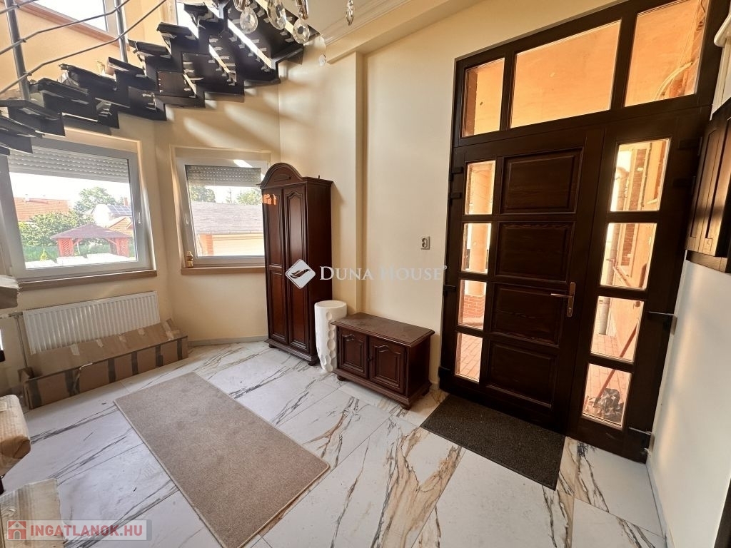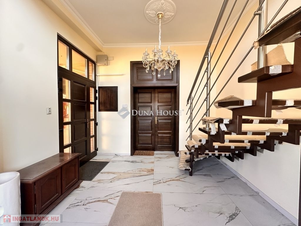 Eladó ez a 222 m2-es, 2000-ban újraépített és bővített, majd 2025-ben teljesen megújult, kétszintes, polgári stílusú, klasszikus családi értékeket képviselő téglaépítésű családi ház.