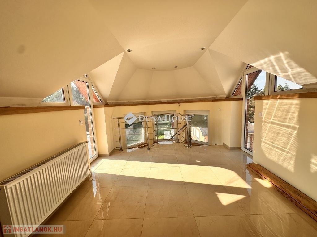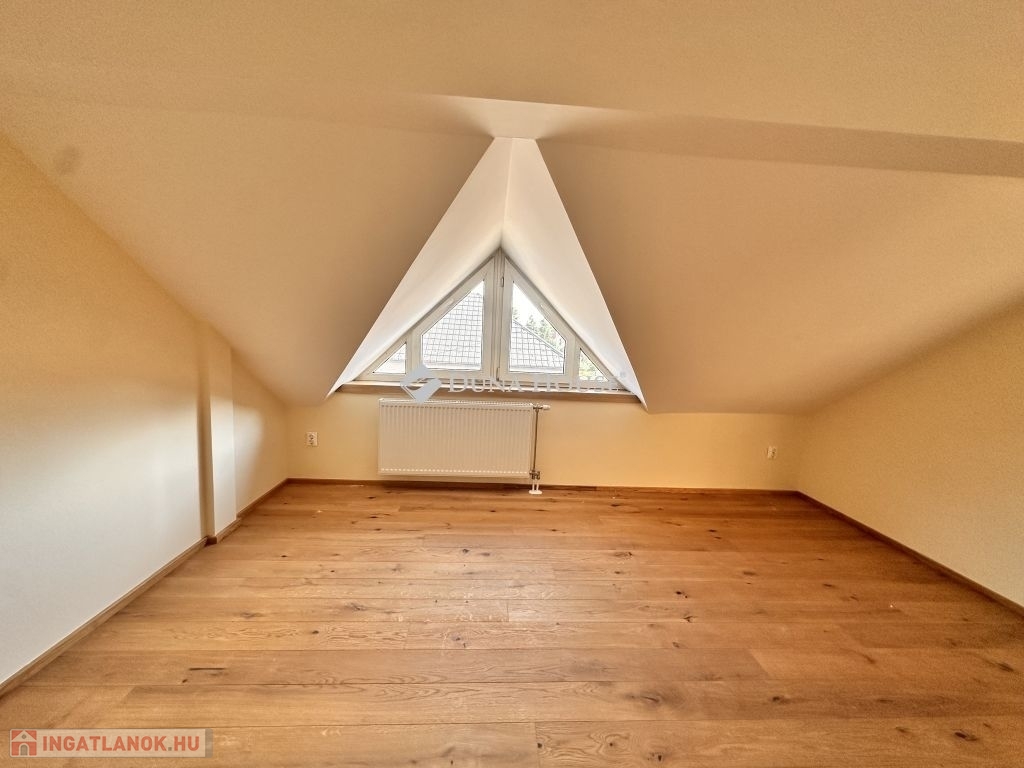 Emeleten: világos, egybefüggő élettér ( nappali) amelyből nyílik a három hálószoba, egy fürdőszoba, két különálló terasz.