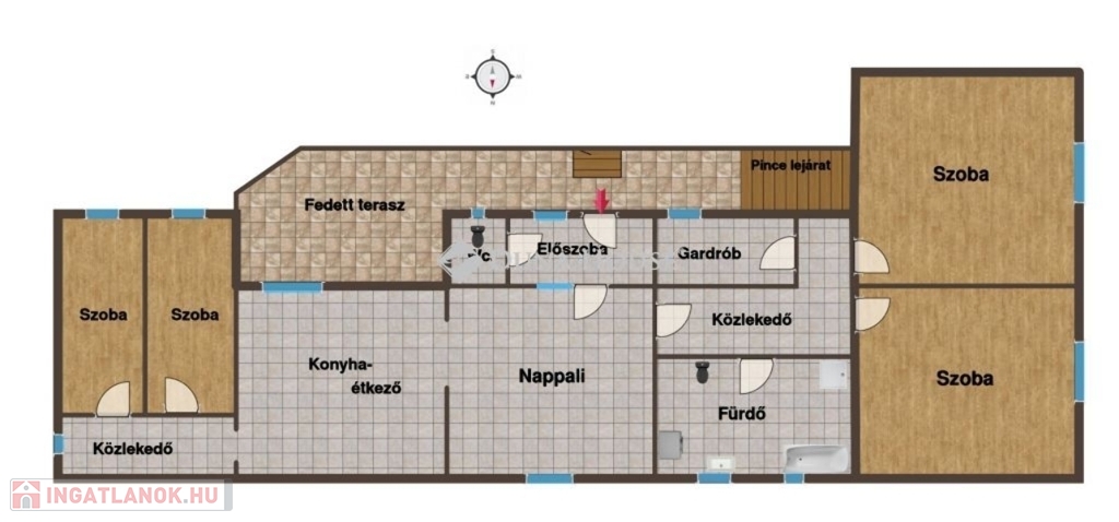 nappali és 4 különálló hálószoba,