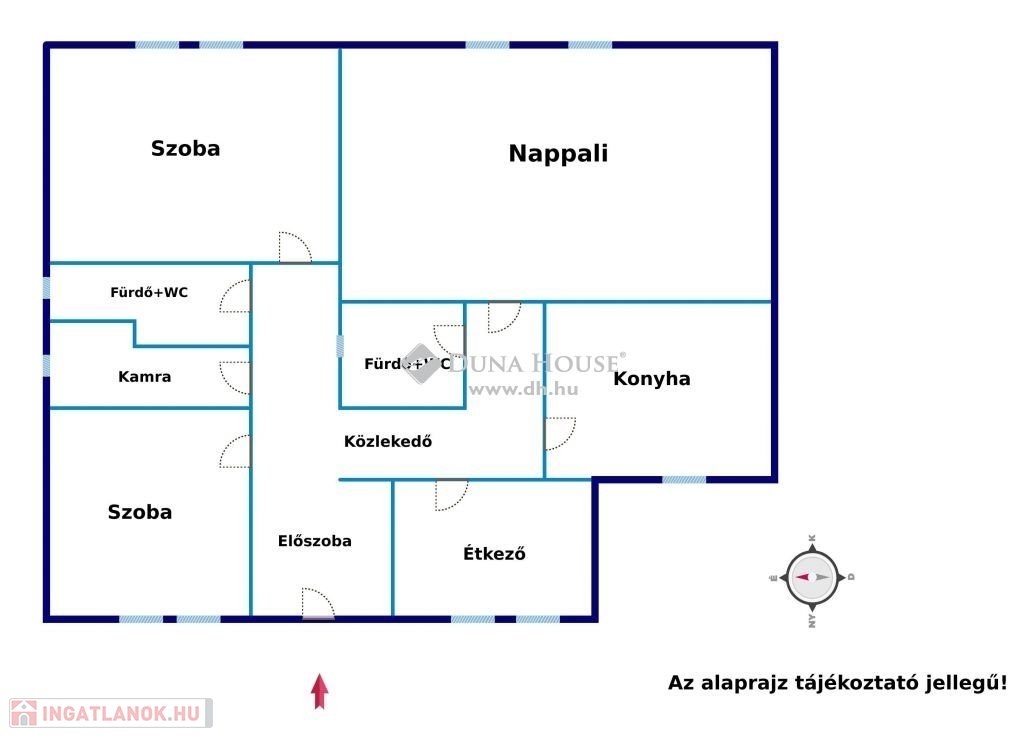 A lakrészben 3 szoba, 2 fürdőszoba, kamra, konyha, közlekedő, előszoba helyiségeket foglal magába mely alatt jelenleg kazánházként funkcionáló pincerész helyezkedik el.