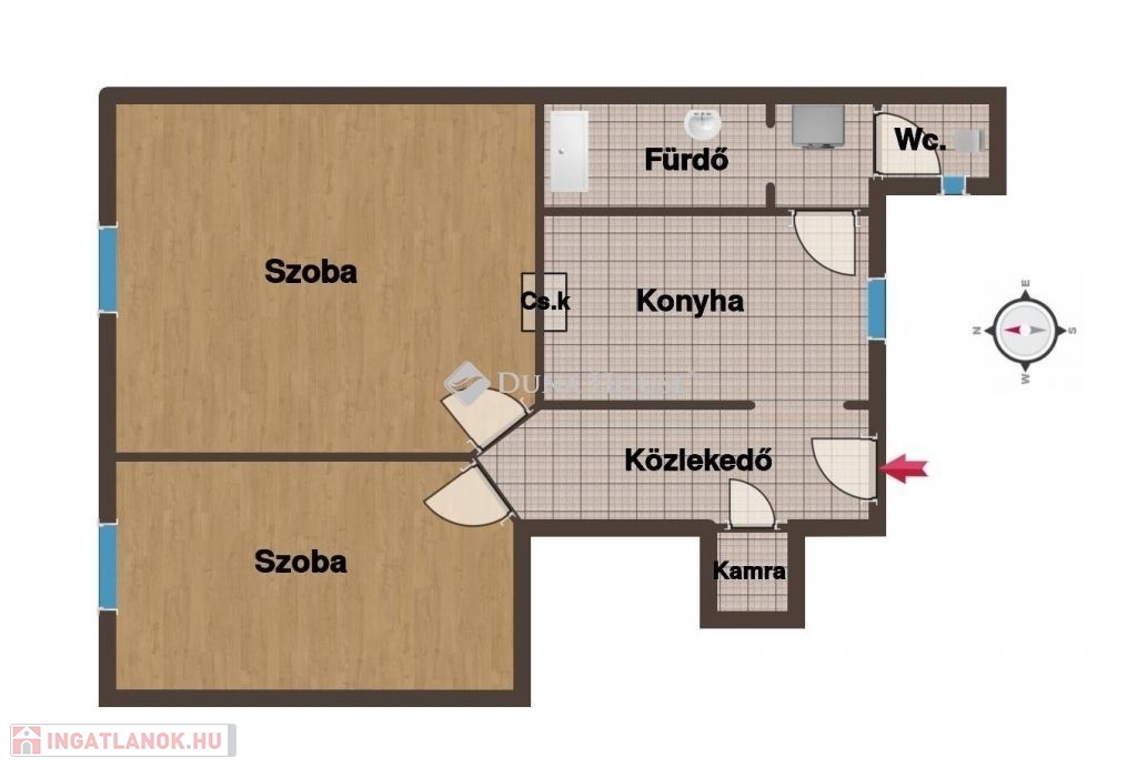 A lakás teljeskörű felújítást kapott 2024-ben, amikor is megújjult a víz és villanyhálózat, új hideg,-és melegburkolatok kerültek lerakásra, valamint új nyílászárók kerültek beépítésre.Fűtése egy konyha-szoba közé helyezett cserépkályhával történik, illetve hűtő-fűtő klíma is rendelkezésre áll.