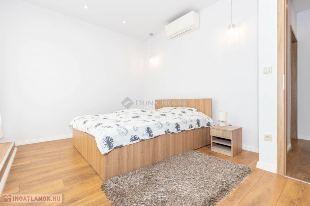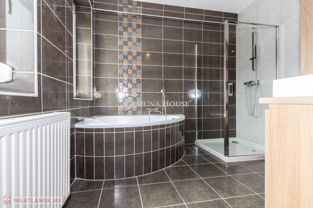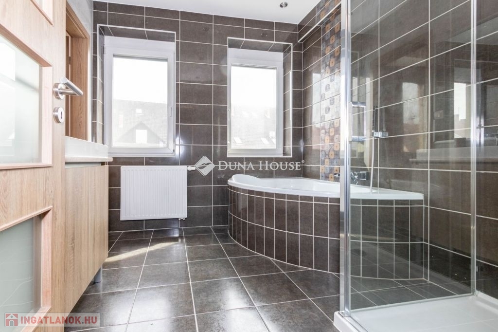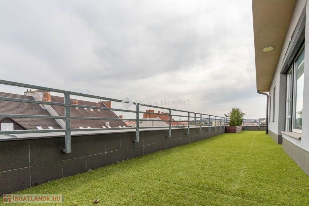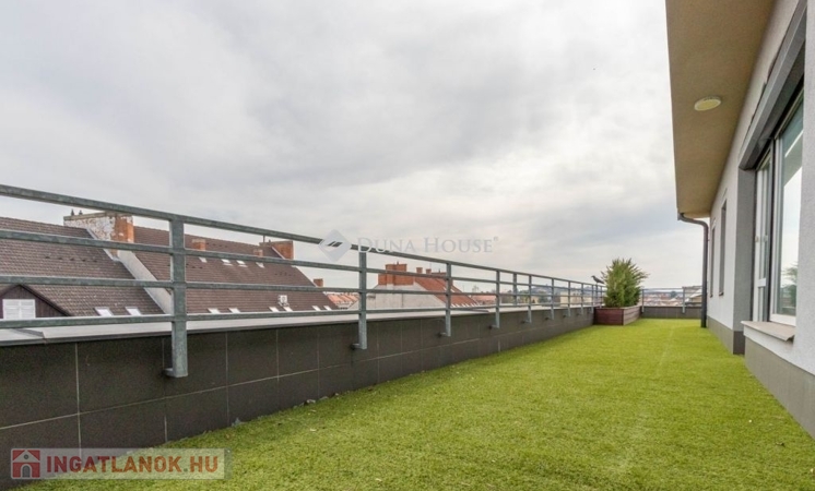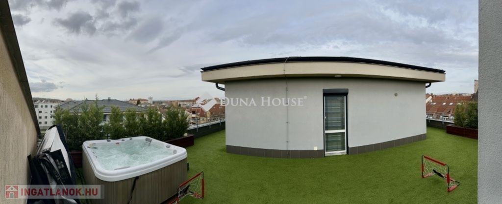 Eladó egy luxus kategóriájú téglaépítésű penthouse Zalaegerszegen. Az ingatlan 2017-ben épült, kivételes minőségben és stílusban, amely nem csak kényelmet, de egyedülálló panorámás kilátást is biztosít jövendőbeli tulajdonosának.Lokációja kitűnő, központi elhelyezkedésű, így a városi élet szolgáltatásai könnyen elérhetőek, legyen szó bevásárlásról, kulturális eseményekről vagy bármilyen más tevékenységről. Az ingatlanba beérve az alsó szinten található az előszoba, fürdőszoba külön WC helyiséggel, gardrób és egy tágas szoba külön erkéllyel. Felső szintre felérve található a tágas nappali, konyha, dolgozószoba, fürdőszoba, hálószoba.A lakás sajátossága a hatalmas terasz, amelyről lenyűgöző panoráma tárul elénk, így a reggeli kávézások vagy baráti összejövetelek új dimenziót nyerhetnek. Az otthon nem csak szemet gyönyörködtető, de praktikus is: a modern, 3 rétegű nyílászárók gondoskodnak a hőszigetelésről és a zajszint minimalizálásáról, így biztosítva a zavartalan pihenést. Az igazi luxusérzetet pedig a lakáshoz tartozó jakuzzi teszi teljessé, amely tökéletes kikapcsolódást nyújt a hosszú napok után.A lakáshoz vásárolható egy garázs elektromos kapuval, ára 13,5 millió Ft áron.Az ingatlanhoz tartozó bútorok további 20 millió Ft összegért megvásárolható.