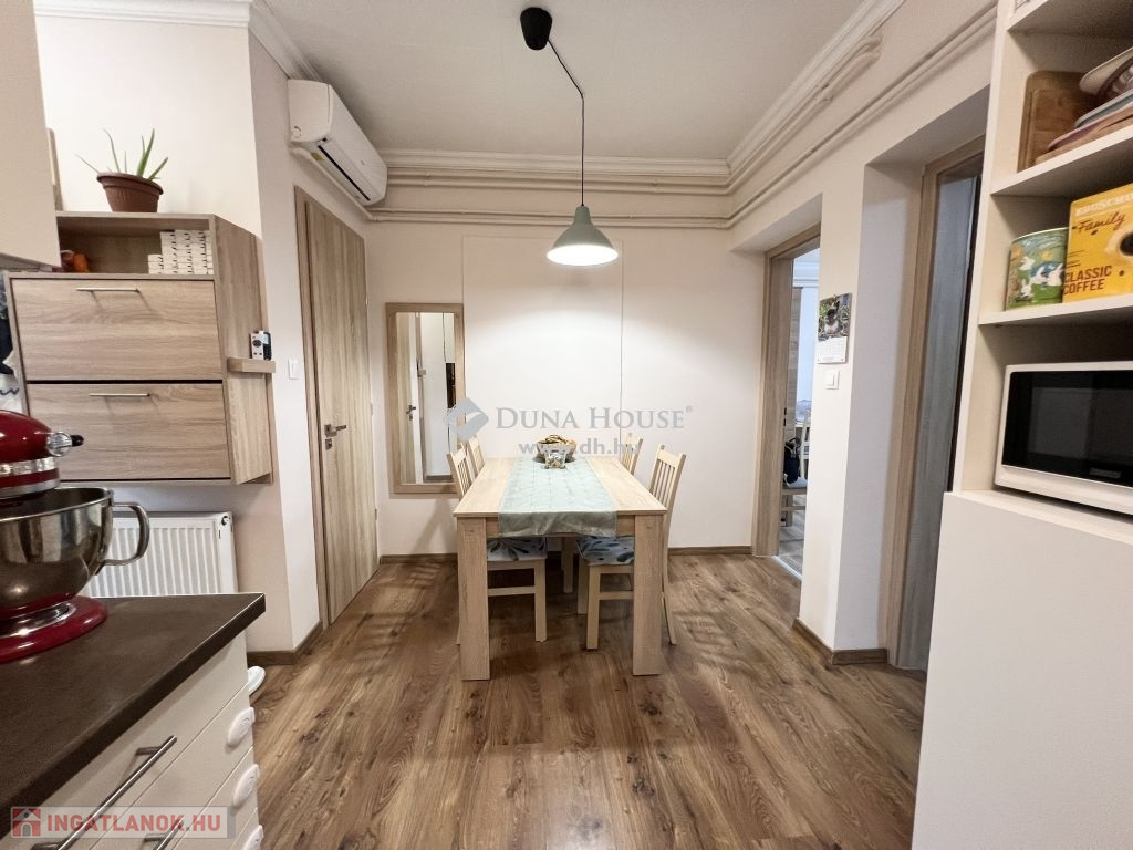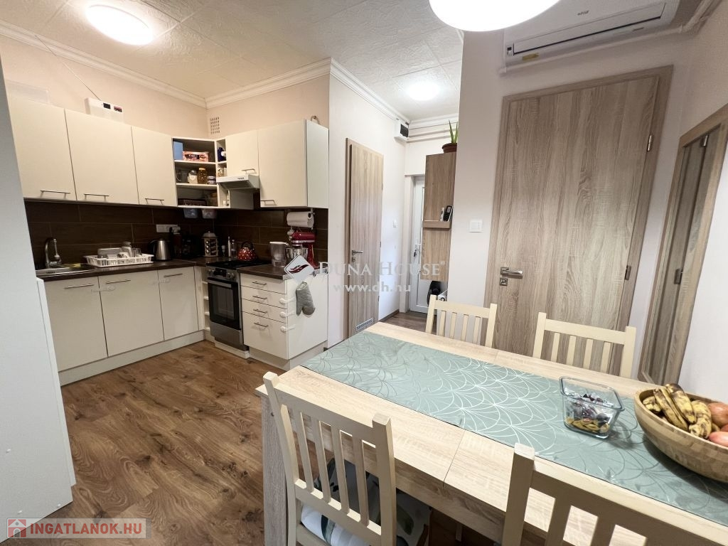 Felújított, 1. emeleti lakás eladó Zalaegerszeg belvárosában, a kórház közvetlen közelében!Eladóvá vált Zalaegerszeg belvárosában, a kórház szomszédságában egy 61 m²-es, felújított, fiatalos hangulatú, világos lakás a társasház 1. emeletén, ingyenes parkolási lehetőséggel.A lakás kelet–nyugati tájolású, kiváló elosztásának és nagy ablakainak köszönhetően napfényes és jól szellőző.A burkolatok cseréje 2018-ban történt, a modern, hőszigetelt nyílászárók redőnnyel és a biztonságos bejárati ajtó 2021-ben kerültek beépítésre. A beltéri ajtók két éve lettek korszerű, esztétikus darabokra cserélve.Főbb jellemzők:2 keleti fekvésű, tágas szobaKülön WC és fürdőszobaKonyha-étkező praktikus elrendezésselEgyedi cirkófűtés gázkazánnalÚj zuhanykabin2021-ben beépített hűtő-fűtő klímaFrissen festett falak, azonnal költözhető állapotModern belső ajtókAz ingyenes parkolás a zárt udvari parkolóban megoldott (elektromos kapuval)Saját tárolóhelyiség az alagsorbanPer- és tehermentes, gyors birtokbavétel lehetségesA kiváló elhelyezkedés révén minden fontos intézmény, bolt, buszmegálló, iskola pár perc sétával elérhető – tökéletes választás lehet pároknak, időseknek, vagy akár befektetés céljára is.