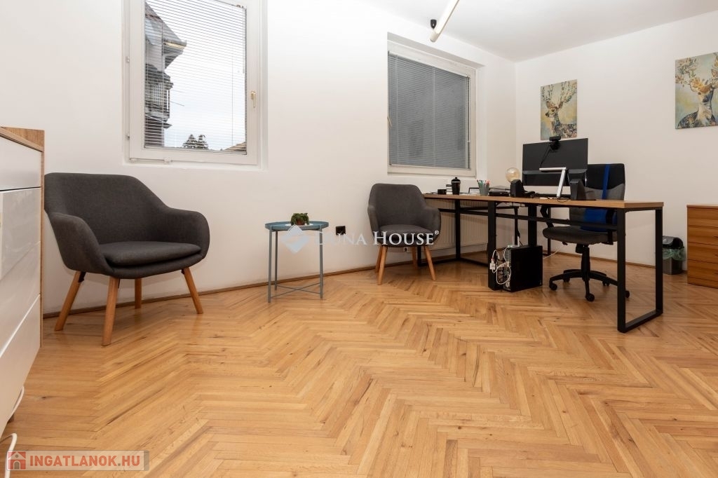 Ez az 1. emeleti, 108 m²-es ingatlan lakás ideális választás lakásnak, irodának vagy akár rendelőnek is.