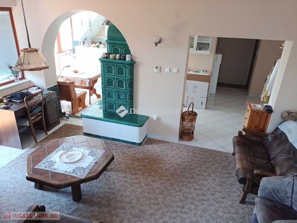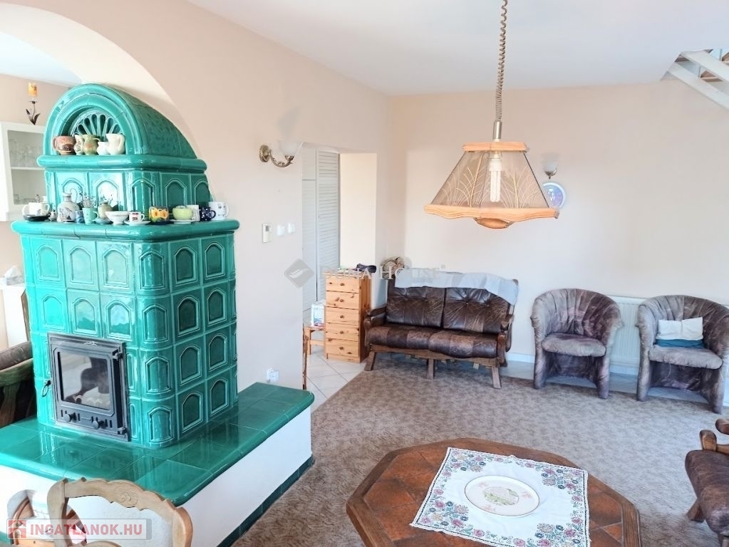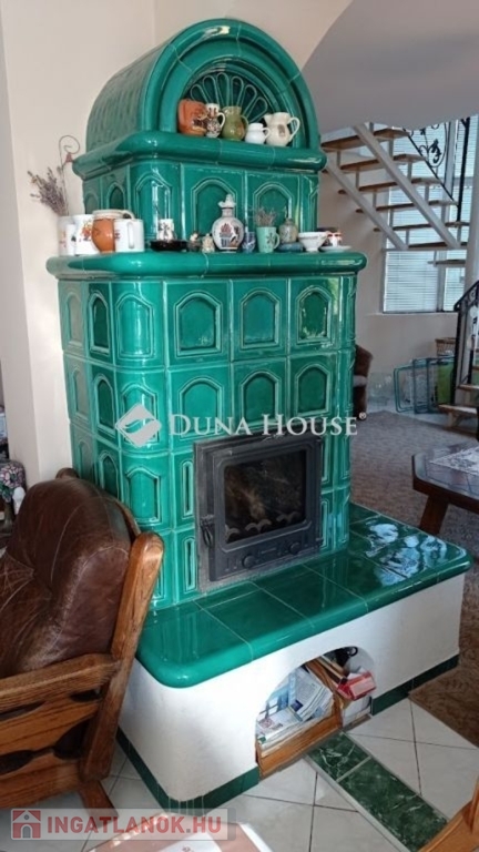 Az alsó nappaliban egy nagyon szép , gondos kezek által készített cserépkályhát is találunk, ami tényleg hangulatossá teszi a belső teret.