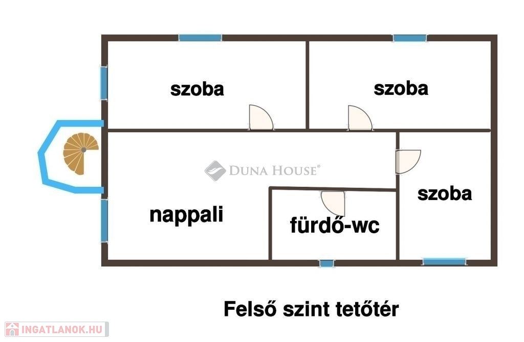 Felső szint:- nappali-3 szoba-fürdő wc-vel
