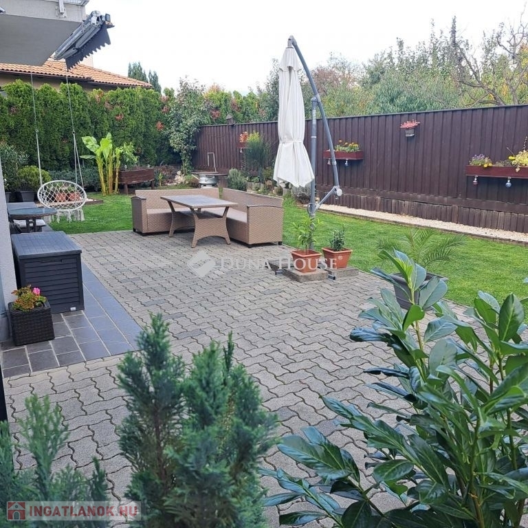 A kert ideális pihenésre, családi és baráti összejövetelekre, továbbá egy kis tároló is rendelkezésre áll.
