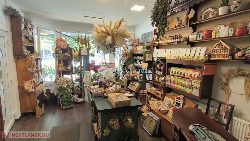 20 m²-es eladótér, nagy üvegfelülettel, ügyfélforgalomra ideális