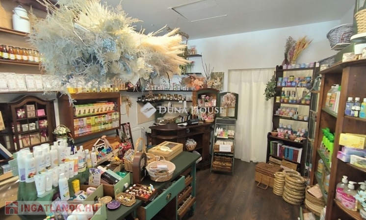 20 m²-es eladótér, nagy üvegfelülettel, ügyfélforgalomra ideális