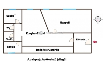 A nappali + 2 külön nyíló szoba kényelmes életteret biztosít, a konyha étkezővel a mindennapok központja lehet. A külön fürdő és WC igazi előny a rohanós reggeleken.