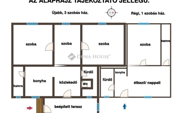 Az ingatlan két külön bejáratú házból áll: egy 37 nm-es, felújítandó, öreg, 1 szobás, vegyes falazatú épületből és egy 1987-ben épült, jó állapotban lévő, 83 nm-es, 3 szobás házból, ami tégla szerkezetű, így biztosítva a tartósságot és a jó hőszigetelést.