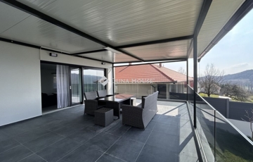 Prémium minőség nettó 267 nm-en!Családi házat kínálok megvételre Zalaszentgrót egyik csendes zsákutcájában. Az elvehetetlen panorámával rendelkező kettő szintes családi ház nappali+5 háloszobás, különlegessége a tökéletesen kialakított teraszán kívül, hogy minden szobához fürdőszoba tartozik, ezzel biztosítva, hogy egy nagyobb, több tagú család is kényelmesen el tudjon különülni egymástól, akár egy reggeli készülődés során, vagy egy fárasztó nap után, amikor mindenki privát szférára vágyik. Közösségi tere tágas, konyhai berendezése magas minőségű bútort és gépezetet kapott, ez is ugyanúgy mint a ház többi része még érintetlen, vadonatúj, a ház első lakóit várja!Elrendezése praktikus, a földszinten nappali+konyha+étkező, kettő hálószoba, az emeleten pedig további három hálószoba van. A 3521 nm-es telket a házból tudjuk megközelíteni, a konyha mellett elhelyezkedő terasz ajtón át. Műszaki tartalma értéket képvisel, mai kornak abszolút megfelelő, hiszen ez egy téglából épült cserépfedésű tetővel ellátott szigetelt ház, három rétegű nyílászárókkal, elektromos redőnnyel. Villamos hálózata 3X25 A, ezzel működtetve a hét beltéri egységet magába foglaló klímás hűtő- és fűtő rendszert, éjszakai árammal kiegészítve a maximális energiatakarékosság jegyében. Dupla garázs kívülről elérhető, ennek szerkezete panelből készült. Az udvarról elérhető egy külön helyiség, ahol a ház teljes gépészeti rendszere van, ezen felül egy élhető méretű helyiség akár családi összejövetelek, akár bármilyen más jellegű tevékenységnek helyéül szolgálhat. Nagyon ritka olyan ingatlant találni manapság, ami azonnal költözhető, gyönyörű, igényesen kivitelezett állapotú, csendes helyen levő, ám Zalaszentgrót központja percek alatt elérhető autóval. Befektetői szempontból is érdemes megvizsgálni a ház adottságait, hiszen apartmanként is minden igényt kielégítő, könnyen megtérülő hasznot generálhat tulajdonosának. Jogtiszta ingatlan, a vételár megfizetése után szinte azonnal birtokba vehető!Megtekintéshez az alábbi elérhetőségek valamelyikén tud velem időpontot egyeztetni. Várom megtisztelő hívását, akár hétvégén is!